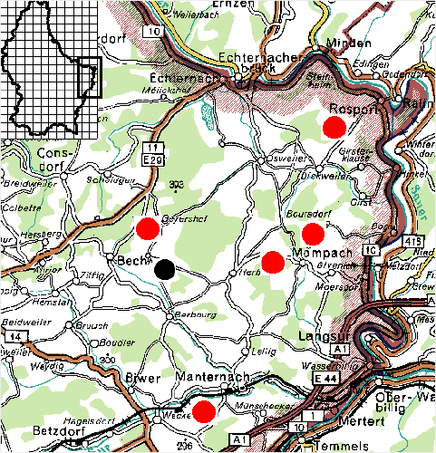 Insgesamt konnten 1993 in Ost-Luxemburg fünf erfolgreiche Rotmilanbruten und mindestens eine, wahrscheinlich zwei Schwarzmilanbruten beobachtet werden. Was die Rotmilanreviere von 1992 betrifft, so war das Paar bei Rosport auch 1993 im gleichen Horst erfolgreich (mit zwei ausgeflogenen Jungvögeln genauso erfolgreich wie im Vorjahr). Das langjährige Brutrevier bei Boursdorf war auch 1993 wieder besetzt. Auf der Basis eines alten Rabenkrähenhorstes wurde ganz in der Nähe des Vorjahreshorstbaumes eine neuer Horst errichtet. Im Gegensatz zum (erfolglosen) Vorjahr kamen 1993 zwei Jungmilane zum Ausfliegen. Neu entdeckt wurden insgesamt drei Rotmilanhorste. Bei zweien handelte es sich wahrscheinlich um bereits bekannte Brutpaare, die in den Vorjahren gezwungen waren, ihr altes Brutrevier zu verlassen. Es war dies das Brutpaar bei Mompach, daß sein angestammtes Brutrevier nach einem vermuteten Abschuß der Jungvögel verlassen und sich jetzt ungefähr 1500 Meter vom alten Horststandort entfernt in einem anderen Waldgebiet angesiedelt hatte. Das Rotmilanpaar von Berbourg, dessen altes Revier von einem Schwarzmilanpaar in Beschlag genommen worden war, ist wahrscheinlich mit dem Paar identisch, das 1993 in der Nähe von Geyershaff, ca. 2000 Meter entfernt, brütete. Um ein bisher unbekanntes Paar handelte es sich bei dem 1993 neu entdeckten Rotmilanrevier bei Manternach. Mindestens zwei Jungvögel kamen hier zum Ausfliegen. Der errechnete Brutbeginn der Rotmilanbruten in Ostluxemburg lag 1993 zwischen dem 1. und 12. April, mehrheitlich am Ende der ersten Aprilwoche. In der Nähe des gleichen Waldes bei Manternach, der auch den Rotmilanhorst beherbergte, wurde Anfang August auch ein juveniler Schwarzmilan gesehen, so daß der Verdacht besteht, daß hier auch eine erfolgreiche Schwarzmilanbrut stattgefunden hatte. Erfolgreich konnte auch das Schwarzmilanpaar von 1992 wieder einen Jungvogel in dem Brutrevier bei Berbourg aufziehen. Allerdings benutzte es nicht den gleichen Horst wie 1992, sondern baute auf der Basis eines alten Rabenkrähenhorstes einen neuen in der Nähe (ca. 50m entfernt) des alten. Der errechnete Brutbeginn lag um den 8.4., also zu Beginn der zweiten Aprilwoche.