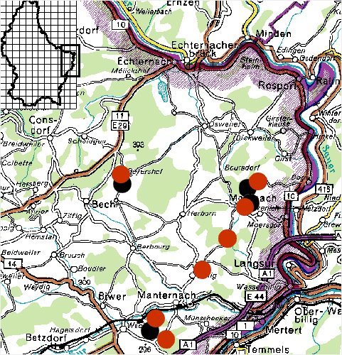 Im (engeren) Untersuchungsgebiet konnten im Jahr 2009 wie bereits im letzten Jahr sieben Rotmilan- und vier Schwarzmilanreviere festgestellt werden. Von den 7 Rotmilanpaaren schritten alle 7 zur Brut. Die vier Schwarzmilanpaare schritten ebenfalls zur Brut. Von den 7 Rotmilanbruten verliefen nur 4 erfolgreich. Von den vier Schwarzmilanbruten waren drei erfolgreich. Von den sechs erfolgreichen Rotmilanpaaren benutzten wie 2008 zwei jeweils denselben Horst wie im Vorjahr (Berbourg, Givenich). Von den drei erfolgreichen Schwarzmilanpaaren benutzen alle drei die Vorjahreshorste. Bei den Rotmilanbruten war die Buche der bevorzugte Horstbaum. Die Schwarzmilane bevorzugten weiterhin die Eiche als Horstbaum. Der Brutbeginn bei den Rotmilanen lag 2009 vermutlich wie in der ersten und der zweiten Aprilwoche (Median 11.4.09 - grobe Schätzung mittels Rückrechnung) herum. Der Brutbeginn der Schwarzmilanpaare lag uneinheitlich zwischen der zweiten und dritten Aprilwoche. Bei den 4 erfolgreichen Rotmilanbruten wurden mindestens 6 Jungvögel flügge (2 x 2 und 2 x 1). Bei den beiden erfolgreichen Schwarzmilanbruten wurden ebenfalls mindestens 6 Jungvögel flügge (3 x 2).