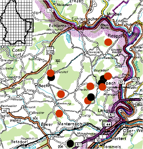 Im (engeren) Untersuchungsgebiet konnten im Jahr 2012 acht (2011: 9) Rotmilan- und fünf (neuer Höchststand - 2011: 6) Schwarzmilanreviere festgestellt werden. Von den 8 Rotmilanpaaren schritten alle 8 zur Brut. Von den 5 Schwarzmilanpaaren schritten 5 zur Brut. Von den 8 Rotmilanbruten verliefen nur 6 erfolgreich. Von den 5 Schwarzmilanbruten waren wahrscheinlich alle 5 erfolgreich. Von den sechs erfolgreichen Rotmilanpaaren benutzten vier jeweils denselben Horst wie im Vorjahr (Givenich, Mompach I, Mompach II, Rosport). Von den fünf erfolgreichen Schwarzmilanpaaren benutzen nur zwei die Vorjahreshorste. Bei den Rotmilanbruten war 2012 erstmals knapp die Eiche der bevorzugte Horstbaum. Die Schwarzmilane bevorzugten weiterhin traditionell die Eiche als Horstbaum. Der Brutbeginn bei den Rotmilanen lag 2012 vermutlich recht früh, d.h. Anfang April. Der Brutbeginn der Schwarzmilanpaare lag auch früher als in den Vorjahren nämlich in der ersten bzw. in der zweiten Aprilwoche. Bei den 6 erfolgreichen Rotmilanbruten wurden mindestens 10 Jungvögel flügge (4 x 2 und 2 x 1). Bei den 5 erfolgreichen Schwarzmilanbruten wurden mindestens 8 Jungvögel flügge (3 x 2 und 2 x 1).