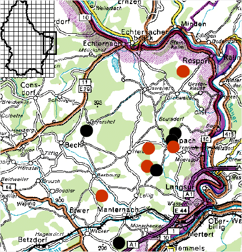 Am 2. März konnte im Jahr 2013 die erste Rotmilanbeobachtung wiederum bei Givenich gemacht werden. Ein Reviervogel verlässt den Horstbereich. Die übrigen Revierbesetzungen erfolgten bis zur letzten Märzwoche. Der erste Schwarzmilanreviervogel wurde am 29. März im Untersuchungsgebiet bei Manternach (Haard) beobachtet. Er hockt auf einem Baum an der Straße in der Nähe des Horstwaldes des Jahres 2012. Im (engeren) Untersuchungsgebiet konnten im Jahr 2013 fünf (2012: 8) Rotmilan- und fünf (2012: 5) Schwarzmilanreviere festgestellt werden. Von den 5 Rotmilanpaaren schritten alle 5 wahrscheinlich zur Brut. Von den 5 Schwarzmilanpaaren schritten 5 zur Brut. Von den 5 Rotmilanbruten verlief nur eine erfolgreich. Von den 5 Schwarzmilanbruten waren wahrscheinlich 4 erfolgreich. Das vermutlich einzige erfolgreiche Rotmilanpaar benutzte denselben Horst wie im Vorjahr (Givenich). Von den vier erfolgreichen Schwarzmilanpaaren benutzen drei die Vorjahreshorste. Bei den Rotmilanbruten war 2013 auch wieder die Eiche der bevorzugte Horstbaum. Die Schwarzmilane bevorzugten weiterhin traditionell die Eiche als Horstbaum. Der Brutbeginn bei den Rotmilanen lag 2013 vermutlich spät, d.h. Mitte April. Der Brutbeginn der Schwarzmilanpaare lag ebenfalls später als in den Vorjahren nämlich erst in der zweiten bis dritten Aprilwoche.