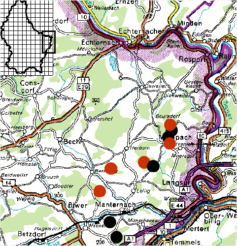 Am 1. März konnte im Jahr 2014 die erste Rotmilanbeobachtung wiederum bei Givenich gemacht werden. Ein Reviervogel jagt in seinem angestammten Jagdrevier. Die übrigen Revierbesetzungen erfolgten ebenfalls wahrscheinlich in der zweiten Märzhälfte. Der erste Schwarzmilanreviervogel wurde am 6. April im Untersuchungsgebiet bei Manternach (Haard) beobachtet. Er kreiste über dem Horstbereich des Vorjahres. Im (engeren) Untersuchungsgebiet konnten im Jahr 2014 fünf (2013: 5) Rotmilan- und fünf (2013: 5) Schwarzmilanreviere festgestellt werden. Von den 5 Rotmilanpaaren schritten alle 5 wahrscheinlich zur Brut. Von den 5 Schwarzmilanpaaren schritten 5 zur Brut. Von den 5 Rotmilanbruten verliefen vier erfolgreich. Von den 5 Schwarzmilanbruten waren wahrscheinlich ebenfalls 4 erfolgreich. Von den erfolgreichen Rotmilanpaaren benutzte nur eines denselben Horst wie im Vorjahr (Givenich). Von den vier erfolgreichen Schwarzmilanpaaren benutzen zwei die Vorjahreshorste. Bei den Rotmilanbruten war 2014 auch wieder die Eiche der bevorzugte Horstbaum. Die Schwarzmilane bevorzugten weiterhin traditionell die Eiche als Horstbaum. Der Brutbeginn bei den Rotmilanen lag 2014 vermutlich bereits Anfang April bzw. in der ersten Aprilwoche. Der Brutbeginn der Schwarzmilanpaare lag vermutlich Ende der zweiten Aprilwoche.