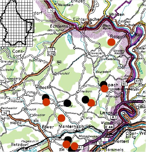 Im angestammten Untersuchungsgebiet konnten im Jahr 2017 sieben (2016 waren es 6) Rotmilan- und sechs (2016 waren es 5) Schwarzmilanreviere festgestellt werden. Von den 7 Rotmilanpaaren schritten wahrscheinlich alle zur Brut. Von den 6 Schwarzmilanpaaren schritten ebenfalls alle zur Brut. Über den jeweiligen Bruterfolg kann keine belastbare Aussage für 2017 gemacht werden. Von den Rotmilanpaaren benutzten fünf die Vorjahreshorste (Kalebierg, Mechelsboesch, Aesssen, Steil und Honboesch). Von den Schwarzmilanpaaren benutze zwei Paare den Vorjahreshorst (Steil, Mechelsboesch). Bei den Rotmilanbruten war 2017 auch wieder die Eiche der bevorzugte Horstbaum. Die Schwarzmilane bevorzugten weiterhin traditionell die Eiche als Horstbaum. Der Brutbeginn bei den Rotmilanen lag 2017 vermutlich wie bereits im letzten Jahr Anfang April bzw. in der ersten Aprilwoche. Der Brutbeginn der Schwarzmilanpaare lag vermutlich Ende der zweiten Aprilwoche.