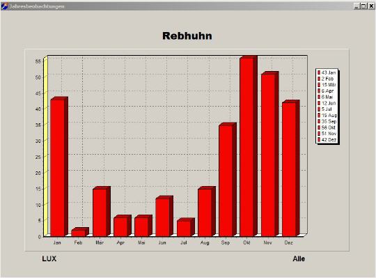 Die Beobachtungen der Rebhühner in Ost-Lux im Jahresverlauf zeigen einen deutlichen Schwerpunkt im Herbst und im Winter. Nach der Brutperiode bilden die Rebhühner Familienverbände (Ketten). In der Brutzeit sind die Rebhühner territorial in Paaren zusammen.