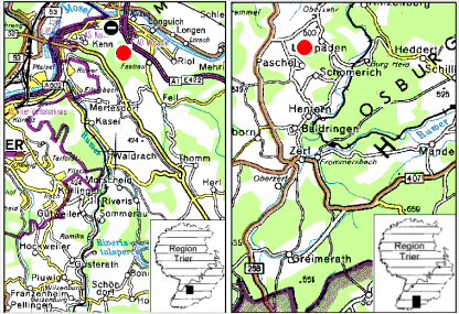 Wie letztes Jahr konnten auch diesmal zwei Rotmilanbruten und eine Schwarzmilanbrut im Untersuchungsgebiet festgestellt werden. Die eine Brut bei Longuich erfolgte im selben Horst wie letztes Jahr. Dieses Jahr kam aber nur 1 Jungvogel zum Ausfliegen. Der Rotmilanhorst bei Baldringen blieb dieses Jahr ungenutzt. Obwohl bereits am 29. Februar ein Exemplar über dem Horst kreisend beobachtet werden konnte, blieb es in den nächsten vierzehn Tage ohne "Anschluß". Anschließend wurde es nicht mehr in der Nähe des Vorjahreshorstes beobachtet. Dafür konnte am 10. Mai ca. 2 km entfernt bei Paschel ein bisher unbekannter Rotmilanhorst entdeckt werden (Buchenaltholz). Ob es sich hier um die oder zumindest einen der Rotmilane des Vorjahreshorstes bei Baldringen handelt, wird vermutet, kann aber nicht mit Sicherheit behauptet werden. Dafür würde der relativ späte Brutbeginn sprechen (ca. 17.4., Rückrechnung), der allerdings auch auf die schlechte Witterung zurückgeführt werden könnte. In dem neuen Horst wurden 2 Jungvögel flügge. Ein weitere Brutversuch des Schwarzmilanpaares bei Kenn blieb mit großer Wahrscheinlichkeit auch (wie bereits im letzten Jahr) erfolglos. Zwar konnte ein neuer Schwarzmilanhorst entdeckt werden (Plastikfetzen), der wurde aber dann im Endeffekt von einem Mäusebussardpaar benutzt. Von Ende Mai bis Mitte Juni konnte gelegentlich beide Schwarzmilane über dem Horstwald kreisend beobachtet werden. Ein besetzter Horst oder flügge Jungvögel konnten nicht entdeckt werden.