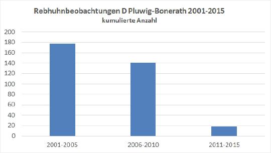 Von 2001 bis 2015 ging die Anzahl der beobachteten Rebhühner in der Verbandsgemeinde Ruwer stetig zurück. Ab 2010 beschleunigte sich der Rückgang sogar.
